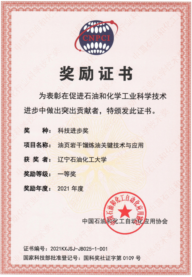 二、获奖及等级:辽宁省科技进步二等奖、辽宁省科技进步三等奖、中国石油和化工自动化应用协会科技进步一等奖、中国石油和化工自动化应用协会科技进步二等奖