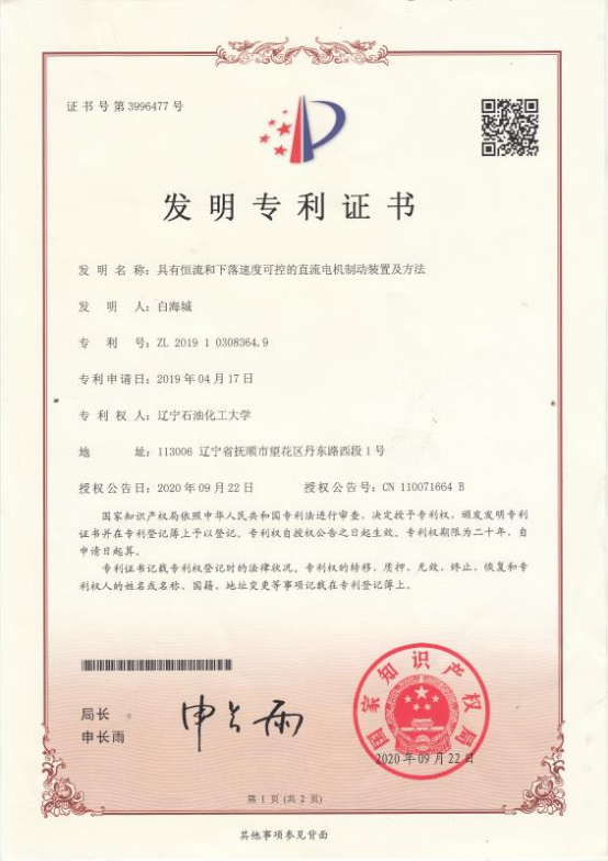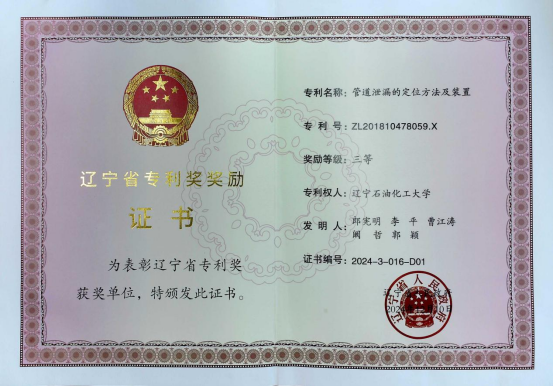 二、获奖及等级:第24届中国专利优秀奖,辽宁省专利奖三等奖,辽宁省技术发明奖三等奖,中国石油工程建设协会科技进步奖一等奖