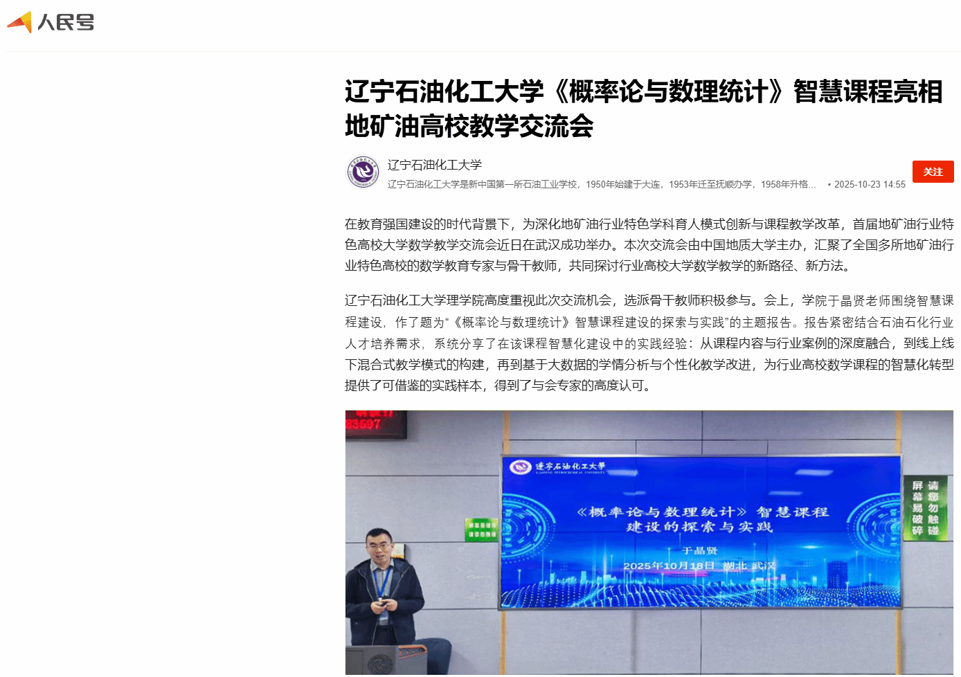 编者按:在教育强国建设的时代背景下,为深化地矿油行业特色学科育人模式创新与课程教学改革,首届地矿油行业特色高校大学数学教学交流会近日在武汉成功举办。本次交流会由中国地质大学主办,汇聚了全国多所地矿油行业特色高校的数学教育专家与骨干教师,共同探讨行业高校大学数学教学的新路径、新方法。人民日报客户端·人民号、辽宁日报·辽望号、搜狐网对此进行了宣传报道。现将相关报道转载如下: