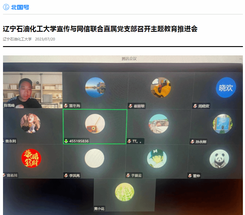 编者按:近日,辽宁日报·北国号对我校宣传与网信联合直属党支部为贯彻落实学校主题教育推进会会议精神,7月16日,通过腾讯会议的方式召开主题教育推进会进行了宣传报道。现将相关报道转载如下: