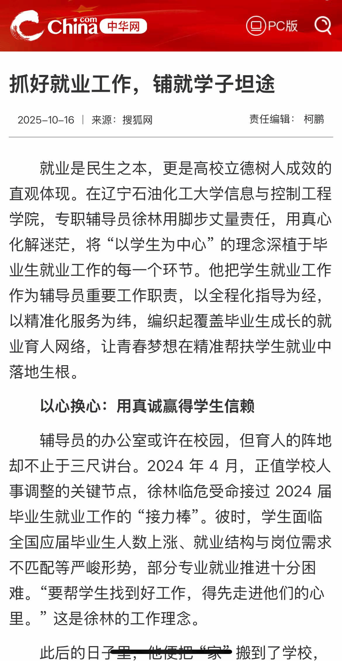 编者按:近日,中华网 、人民教育在线、中国网等媒体平台对我校徐林老师撰写的“抓好就业工作,铺就学子坦途”的文章进行了转载报道。现将相关报道转载如下: