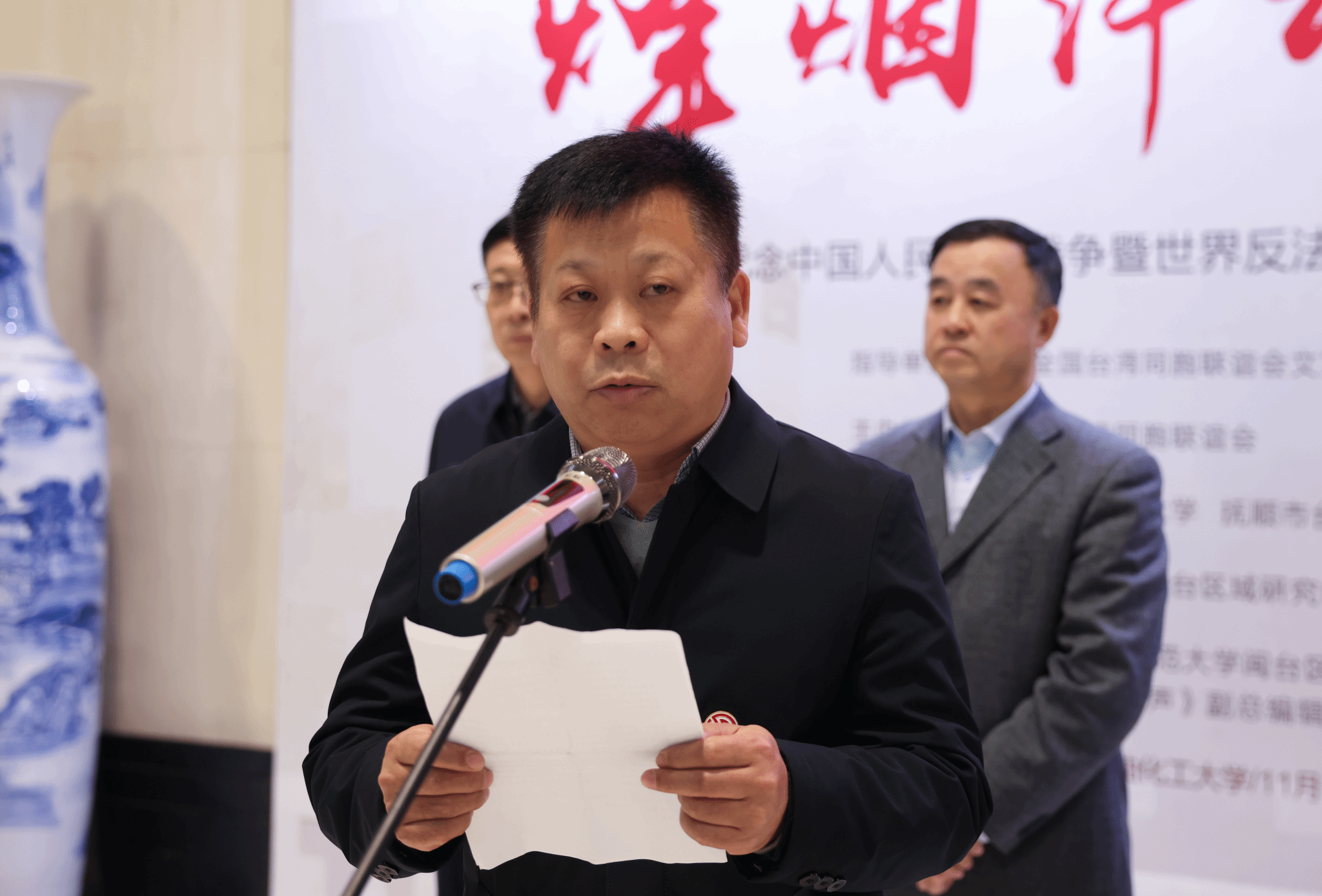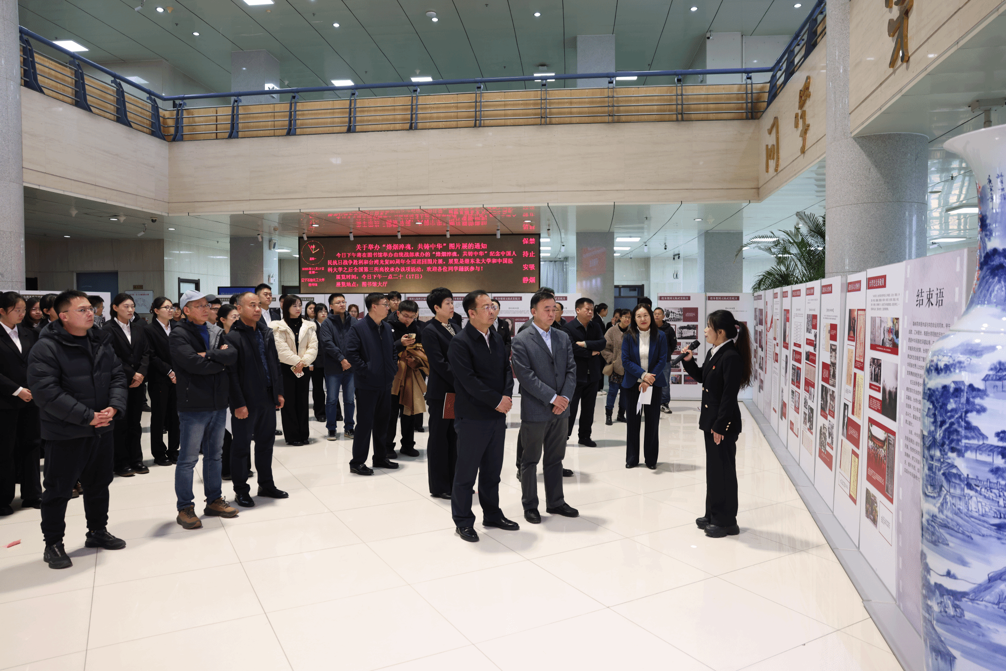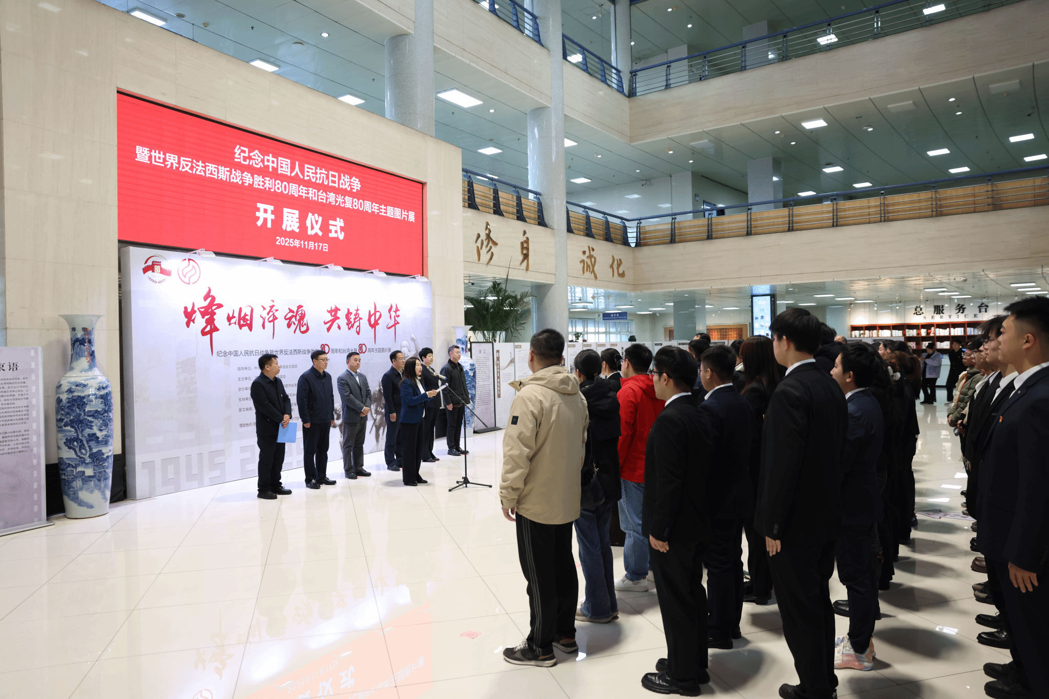11月17日下午,由全国台联策划,辽宁省台联主办,我校与抚顺市台联承办的“烽烟淬魂 共铸中华”主题图片展在我校图书馆启幕。全国台联副会长、辽宁省台联会长周琪,抚顺市委统战部副部长王彤,我校党委书记霍庆生、党委副书记钟俊生等出席了开幕式。开幕式由我校党委统战部部长张燕主持。