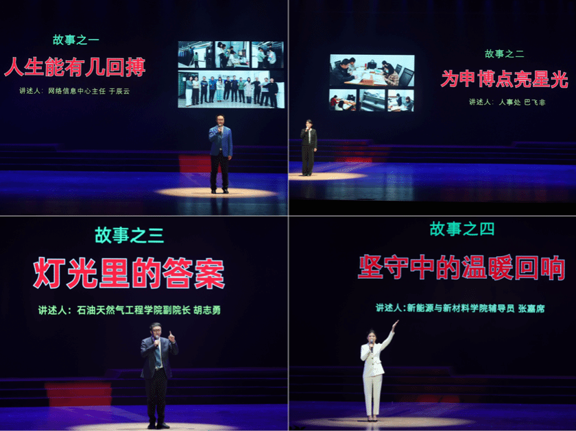 走秀《师者芳华》展现了教职工艺术团舞蹈形体团老中青三代教师的风采,舞蹈串烧《舞动激情》汇聚了少数民族学生、留学生等师生舞蹈爱好者的活力,歌曲串烧《踏歌逐梦》则以真挚情感表达了教职工对艺术与生活的热爱。三部原创话剧《永洁老师》《雷锋》《铁人王进喜》的经典回顾,彰显了学校用话剧“小舞台”搭建思政“大课堂”的育人探索,随后的歌曲联唱《燃情岁月》带领观众重温荡气回肠的时光。舞蹈《搏浪前行》展现了辽石化大人攻坚克难的精气神,诗朗诵《走向未来》与合唱《走向复兴》抒发了对美好明天的憧憬。