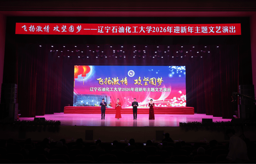 演出以开场式《盛世迎春》拉开帷幕,四位主持人携手登台,用饱含激情的话语回顾2025年学校的奋进历程,展望充满希望的新一年。男女声重唱《不忘初心》传递着坚守使命的赤诚,情景讲述《2025我们一起走过》通过四个篇章,生动再现了全校师生为攻坚拼搏、为梦想奋进的感人瞬间,引发全场共鸣。随后,党委副书记钟俊生登台寄语,他深情点赞招生宣传、宿舍改造工作中的奋斗身影,致敬每一位在平凡岗位上默默付出的基层教职工,荣耀属于团结一心、奋勇向前的全体辽石化大人,并引出表演唱《梦想星光》,点亮了现场每个人的逐梦之心。