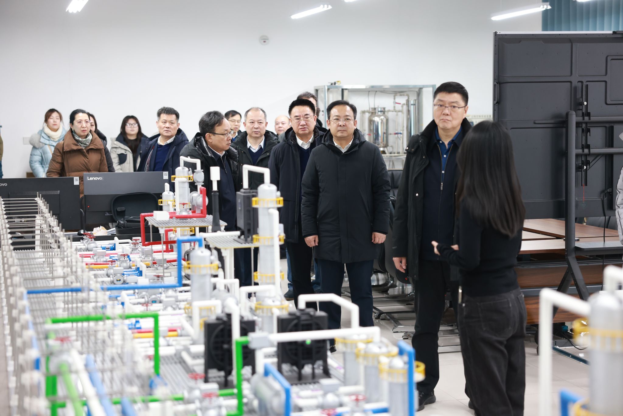 1月15日,辽宁省科学技术协会党组书记、副主席冯文胜一行7人来我校调研,实地考察了辽宁石化新型工业化院大型仪器检验检测中心、石油化工运行过程运行优化与节能技术国家地方联合工程实验室、石油化工产业链仿真基地,并召开座谈会,调研学校科技工作以及承办2026年辽宁省青少年机器人竞赛承办筹备情况。抚顺市委副书记呼延广玮以及市科协相关负责同志陪同调研。我校党委书记霍庆生、校长刘坚、副校长曹江涛,学校相关职能部门和二级学院负责人参加调研。座谈会由刘坚主持。