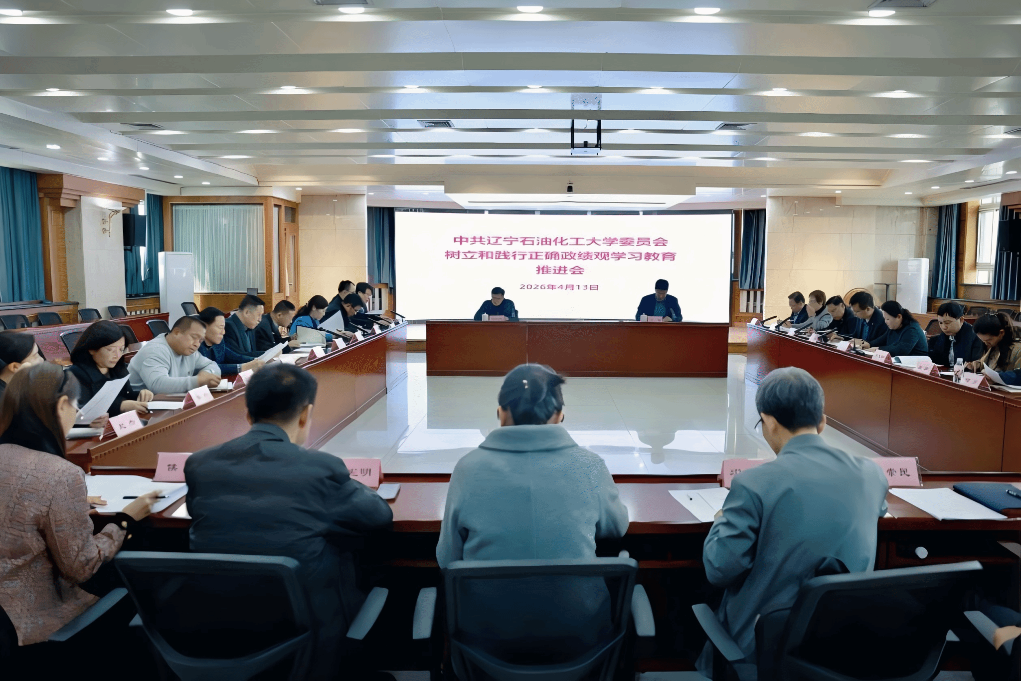 4月13日,学校树立和践行正确政绩观学习教育推进会在第七会议室召开。校党委副书记曹江涛出席会议并讲话,党委常委、副校长、组织部部长王强主持会议。各相关职能部门主要负责人、各二级党组织书记及学习教育督导组成员参加会议。