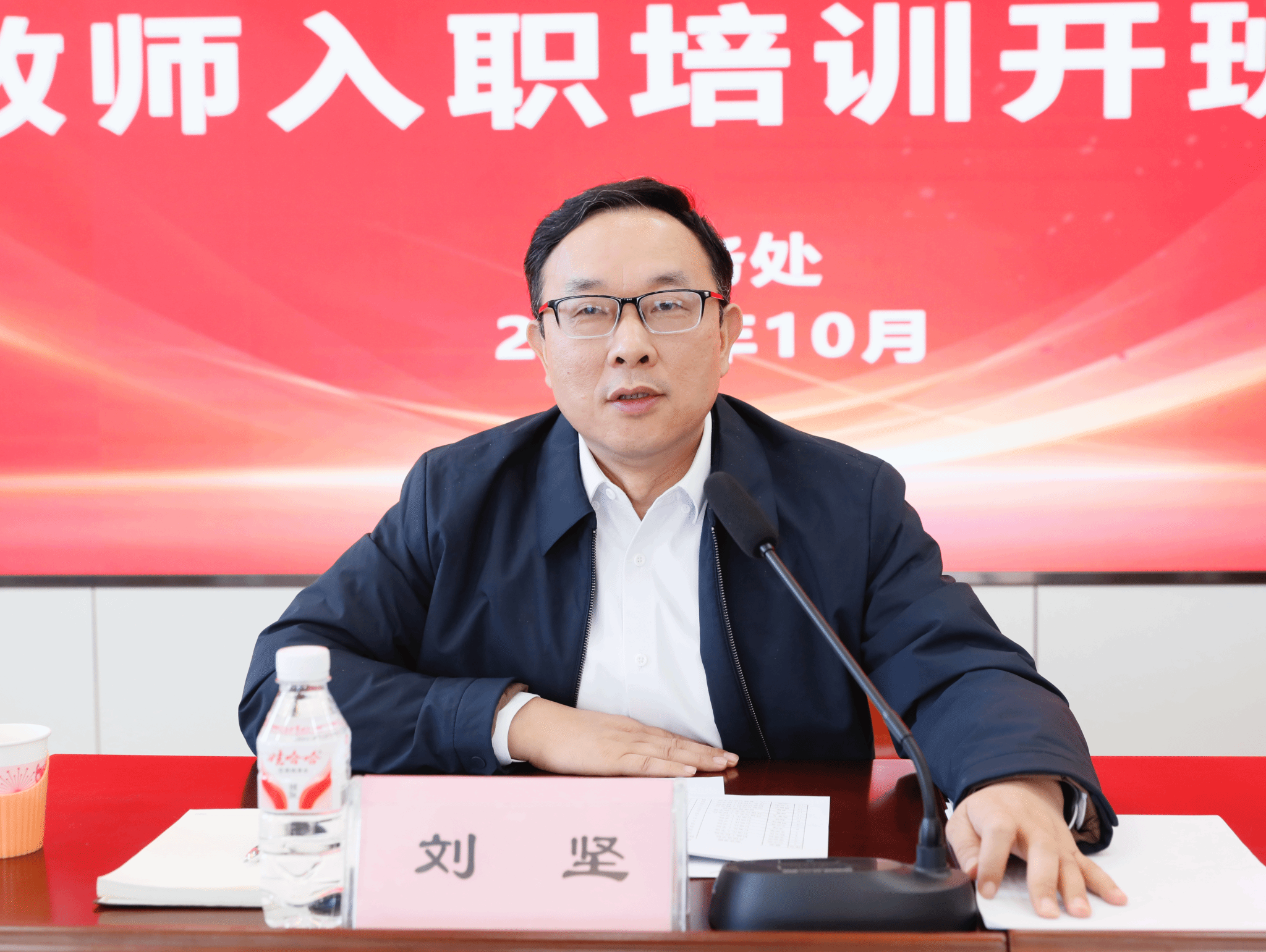 10月23日上午,2025年新教师入职培训开班仪式在大学生活动中心201(智慧大讲堂)举行。校长刘坚、副校长曹江涛出席开班仪式,教务处、人事处、科研处、研究生院等部门主要负责同志,教师代表及76位新入职教师参加开班仪式,仪式由曹江涛主持。