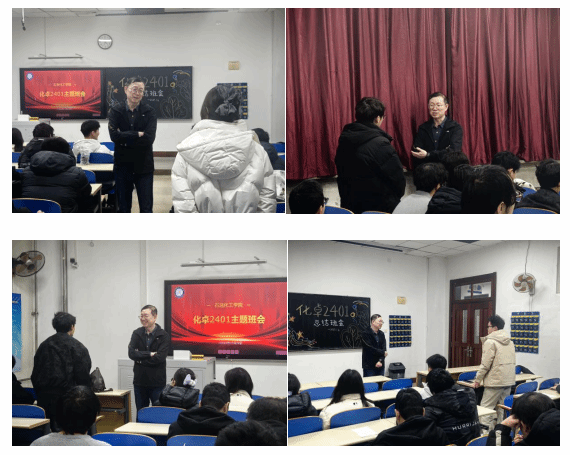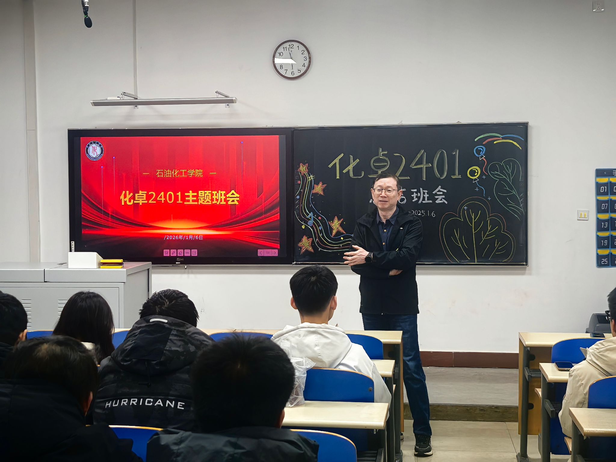 1月6日,石油化工学院化卓2401班召开主题班会。副校长刘海峰走进学生班级,与青年学子面对面交流,共话专业发展与成长成才。班会由辅导员于江主持,班主任王苹参加。