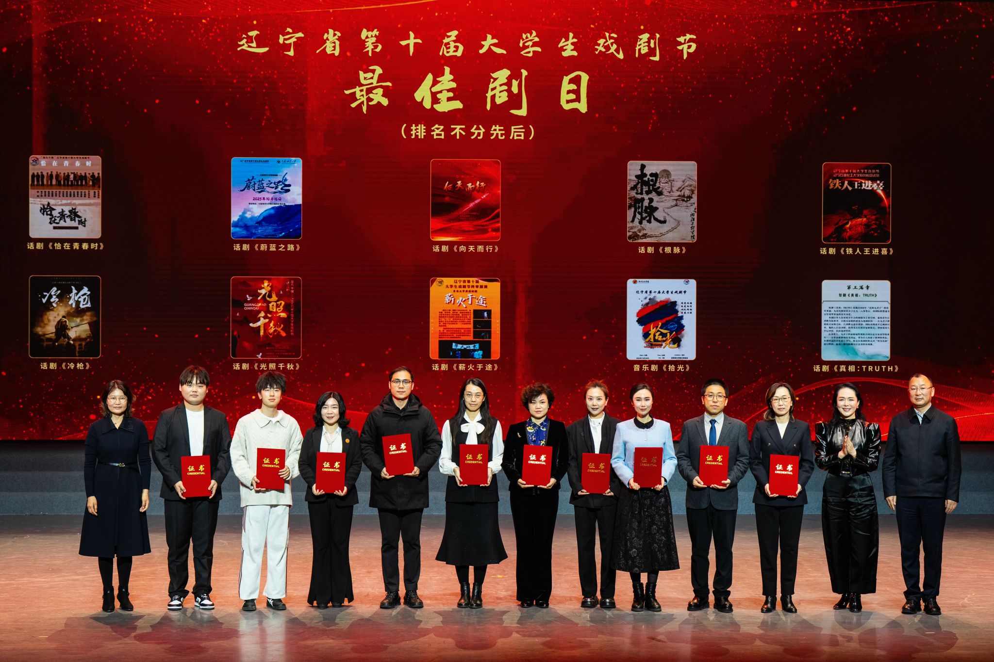 11月29日,由辽宁省文学艺术界联合会、辽宁省教育厅、共青团辽宁省委员会联合举办,辽宁省戏剧家协会、辽宁省教育厅体育卫生与艺术教育处、共青团辽宁省委员会学校部共同承办的辽宁省第十届大学生戏剧节闭幕式在沈阳音乐学院音乐剧场举行,一场属于青春与戏剧的盛宴落下帷幕。经过一个月的激烈角逐与艺术碰撞,学校原创校园话剧《铁人王进喜》一举斩获“最佳剧目”“最佳导演”“优秀指导教师”“优秀组织单位”四项大奖。其中“最佳剧目”作为高校文艺创作领域的标杆性荣誉,不仅仅是学校文化育人成果的重要展示,更彰显了学校办学实力与综合影响力的显著提升。