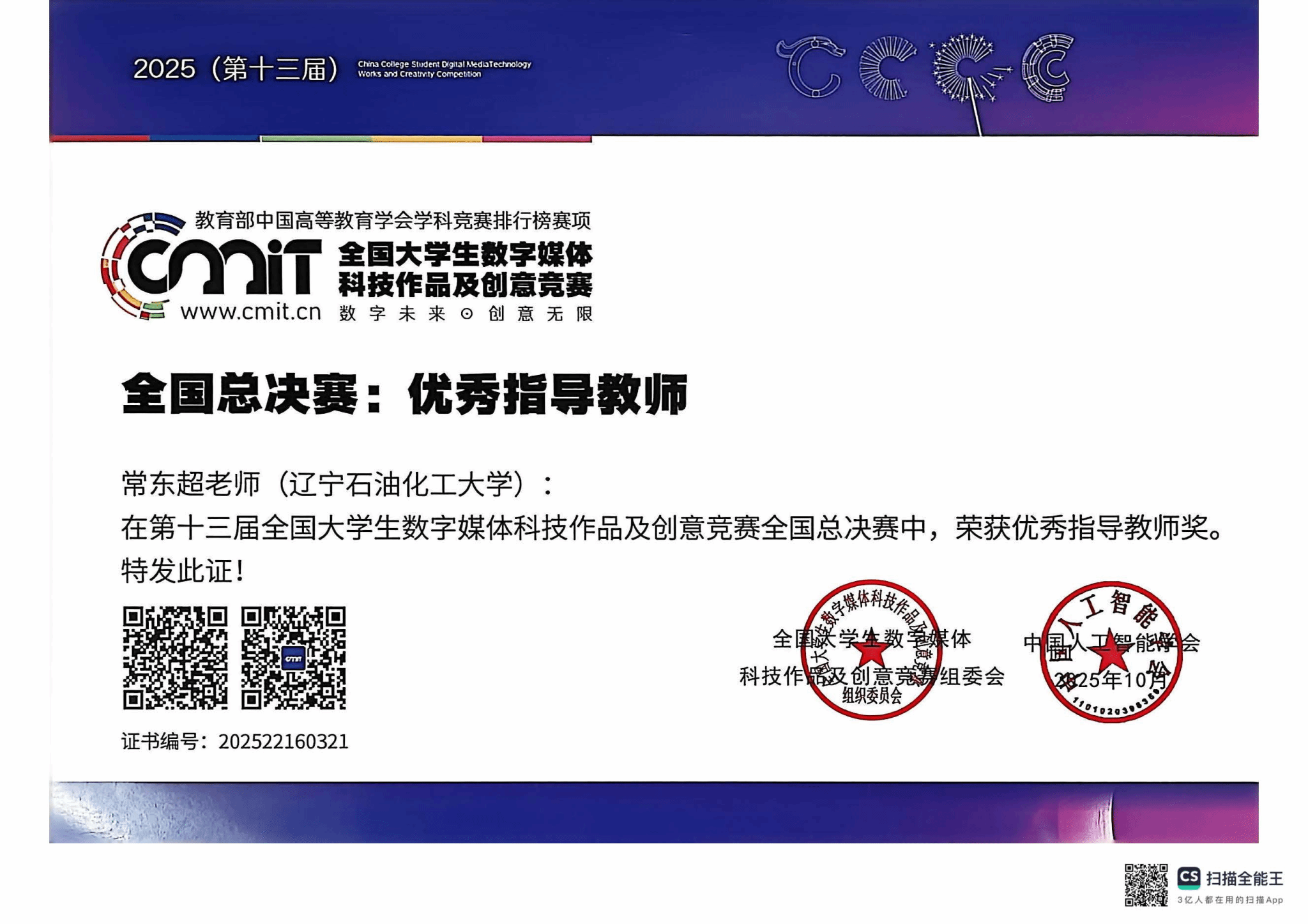 此赛事得到了学校教务处(创新创业学院)、人工智能与软件学院、研究生院、艺术设计学院、石油化工学院的大力支持。我校共有13个学院的学生参与了此项赛事。本赛事校赛负责人人工智能与软件学院教师常东超带领2支队伍共5人的答辩代表团参加国赛现场路演。本次现场决赛成绩的取得是我校师生在积累了前两年的大量现场比赛经验基础上获得的,以赛促教、以赛促学的目的得以进一步实现,国赛一等奖数量取得新突破。(撰稿人:常东超 校对人:韩姝敏 审稿人:赵强/常东超 摄)
