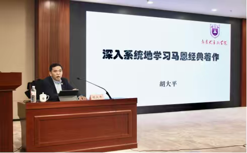 胡大平在讲座中,首先提出学习经典著作既要全面把握马克思主义理论特色、领会精华,又要通晓理论概貌、结合专业运用;既要把握理论内部逻辑关联,又要辨析具体观点独立价值;既要重视知识供给,又要锚定实践需求,强调要牢牢把握好这三对辩证关系。他以《黑格尔法哲学批判·导言》等核心著作为线索,剖析马克思主义体系的“内容与逻辑”——从解读“人类解放与社会解放”的深层关联,到强调“实践”的核心地位,最后得出阐释政治经济学批判的“科学旨趣”与“规律内涵”。此外,他还围绕“马克思的思考特色”“历史唯物主义的核心规定”“现代社会分析的方法论”等维度,给与会师生串联起马克思主义理论体系的核心脉络,让经典著作的内在逻辑与思想力量清晰呈现。